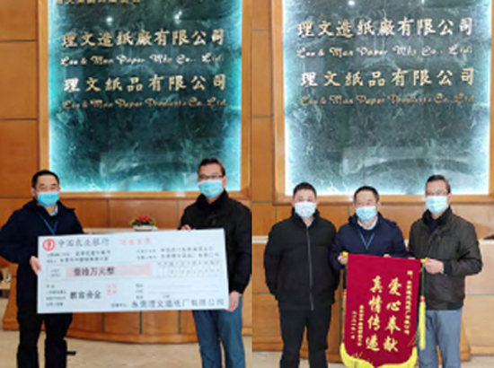 2021 年1 月11 日,東莞理文造紙廠有限公司向潢涌小學(xué)捐贈10萬元助教助學(xué)獎學(xué)金捐款儀式在公司會議室舉行,東莞理文相關(guān)負(fù)責(zé)人、潢涌村委辦公室領(lǐng)導(dǎo)、潢涌小學(xué)校長以及學(xué)校教職工代表出席了捐贈儀式。
